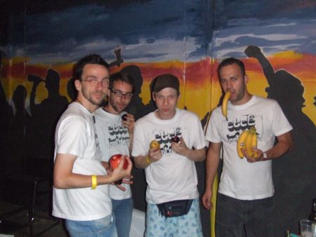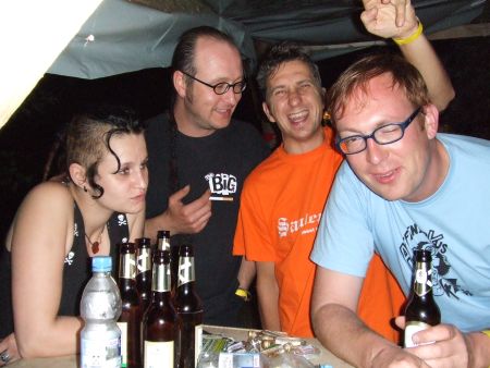 Reisespiele und Handpuppen an Bord des Bandbusses sorgten für eine sehr kurzweilige Hinfahrt, helfende Hände für einen zügigen Aufbau. Kaum angekommen, ging der Auftritt schon los, danach das Feiern. Während sich eine Reisegruppe in sehr kurzer Zeit beklingelte, schauten sich die anderen noch in Ruhe Rantanplan an.