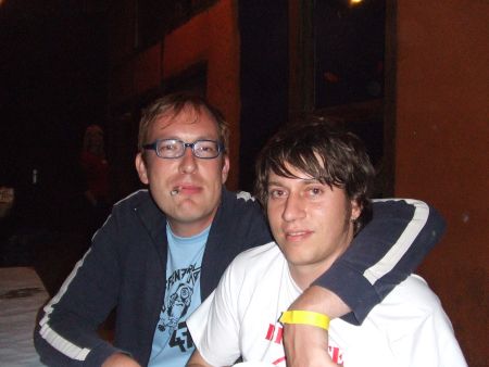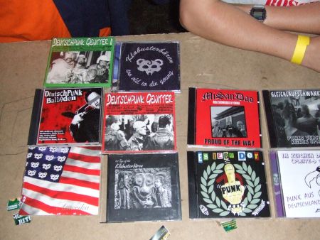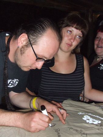 Mit Irish Dingsbums abhängen am Merchandise-Stand, außer CDs gab’s noch T-Shirts, keine Pins.
